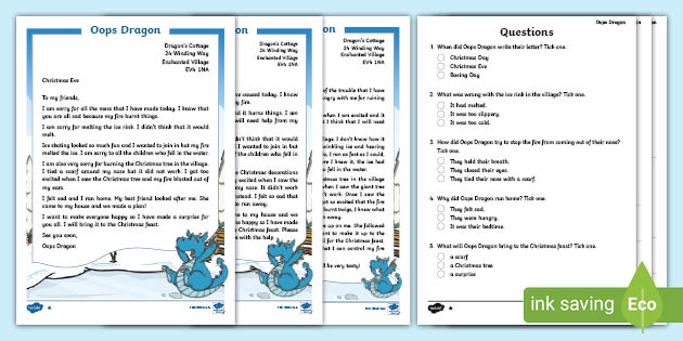 Oops Dragon Differentiated Reading Comprehension Activity Ks1