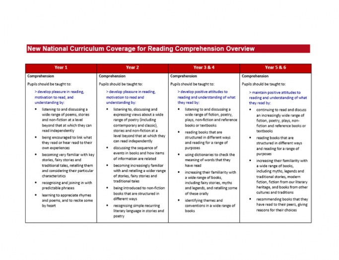 New National Curriculum Coverage For Reading Comprehension Overview Reference Material For Ks1 And Ks2 English Teachwire Teaching Resource